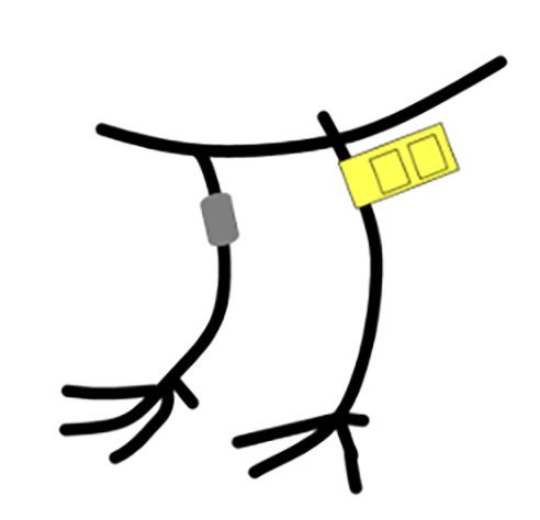 在出生当年被环志的勺嘴鹬,旗标在右胫上,而在出生超过一年后才被环志的勺嘴鹬,旗标在左胫上。